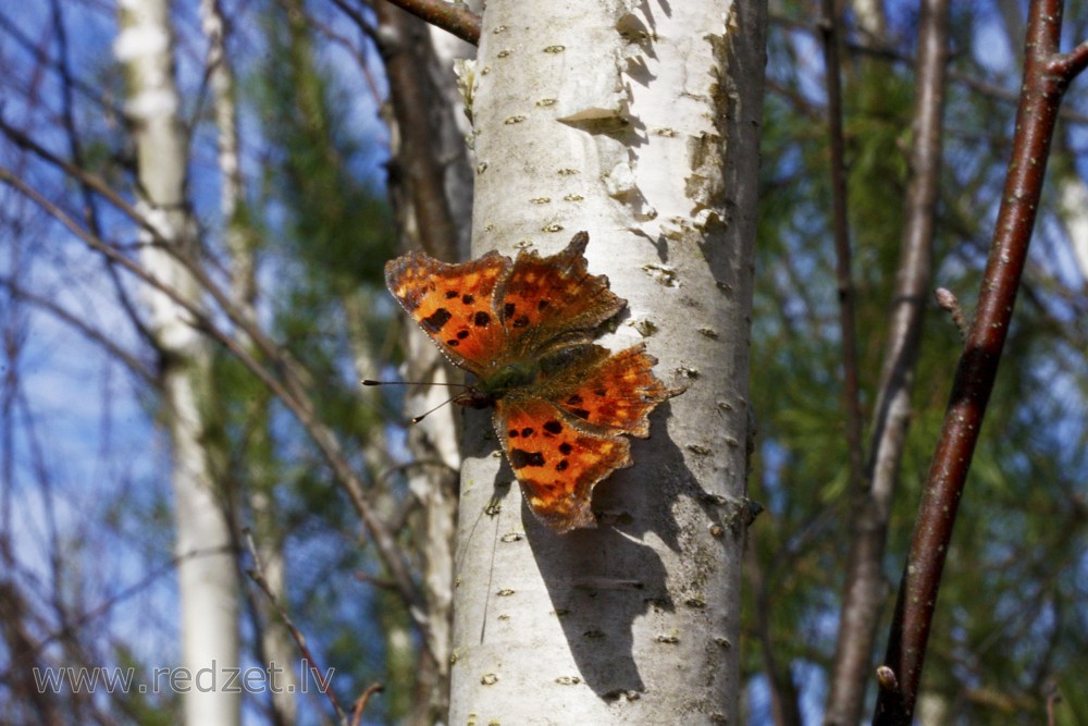 , Jāņogu raibenis (Polygonia c-album), Tauriņi, Bērzs (Betula), Mežs