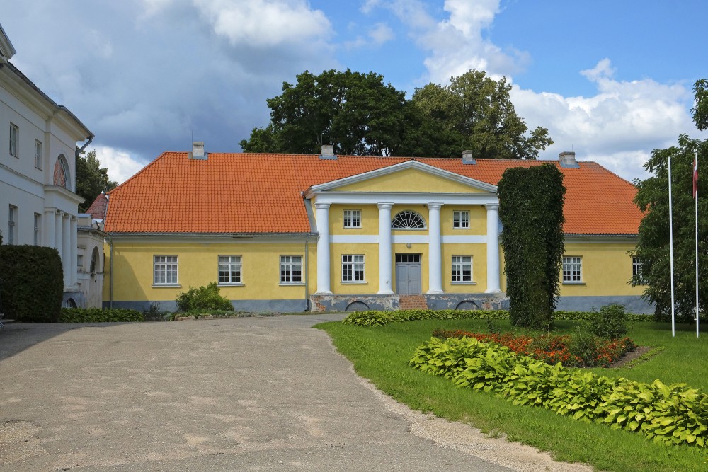 The origins of the manor date back to the turn of the 16th and 17th centuries. The complex of the manor has formed around the administrator’s house, which is the oldest one in the manor. From the year 1800 to 1810 the nobleman Manteuffel was building the manor’s castle with its household buildings in classicism style. The complex is symmetrical and has been formed around the inner yard. At both sides of the castle facing each other are two buildings – a barn with a coach house and the administrator’s house, connected by a gate.